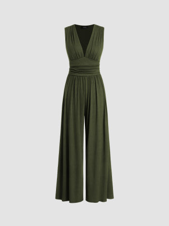 Découvrez la combinaison parfaite pour vous sentir élégante et confiante ! Notre combinaison à encolure en V et jambe large unie et froncée est conçue pour vous mettre en valeur. L'encolure en V flatteuse et les détails froncés ajoutent une touche d'élégance à votre garde-robe, tandis que le pantalon à jambe large et les poches pratiques offrent tout le confort dont vous avez besoin.