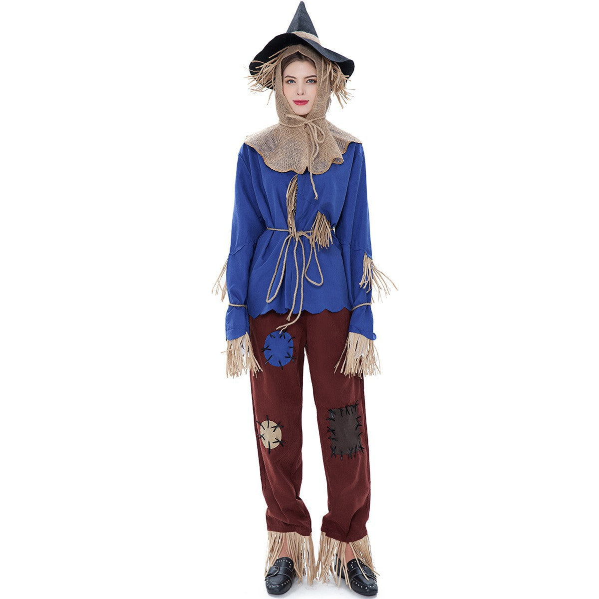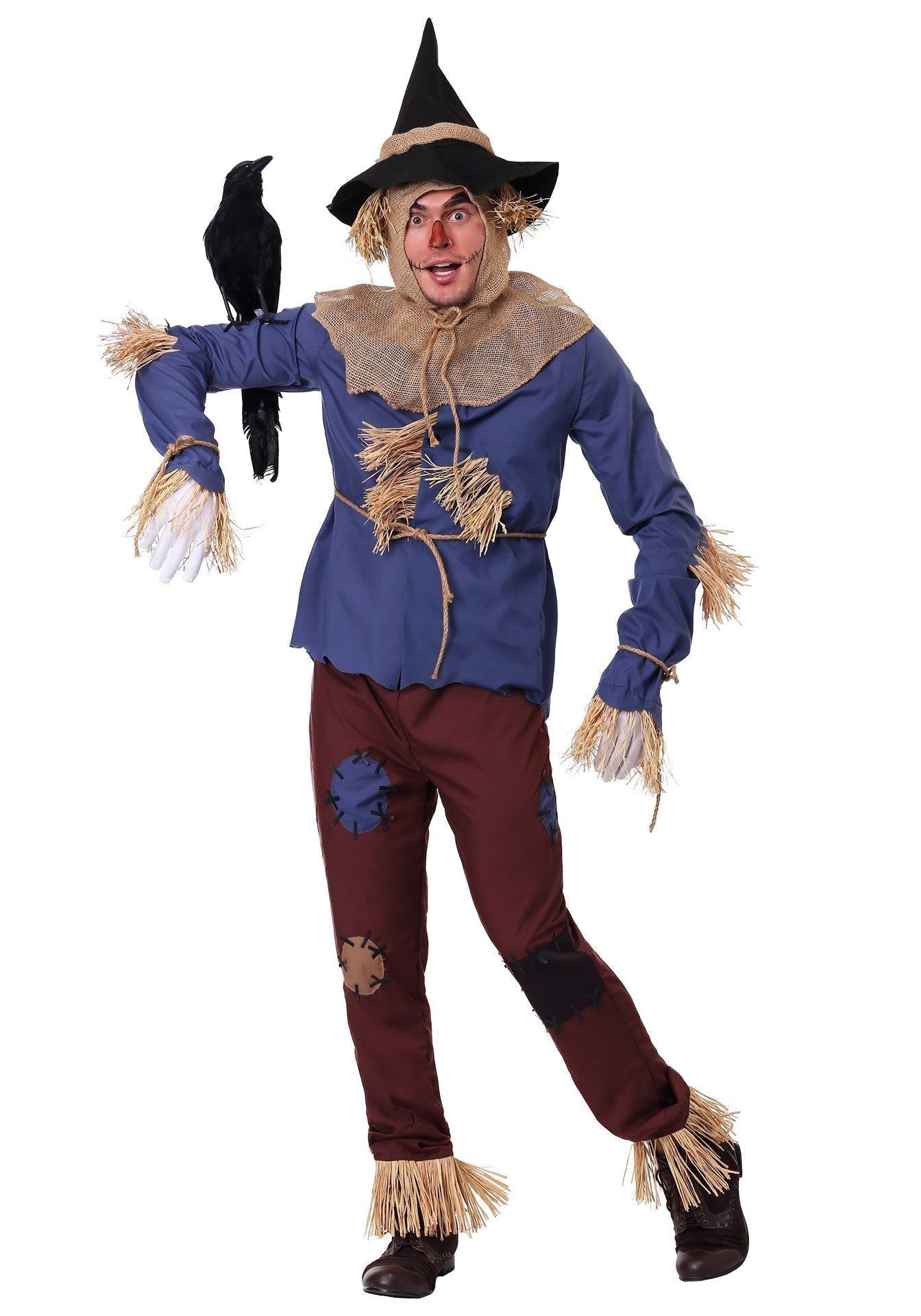 - Design traditionnel : S'inspire des costumes d'épouvantail classiques avec des détails en paille et des accents en patchwork pour un look unique